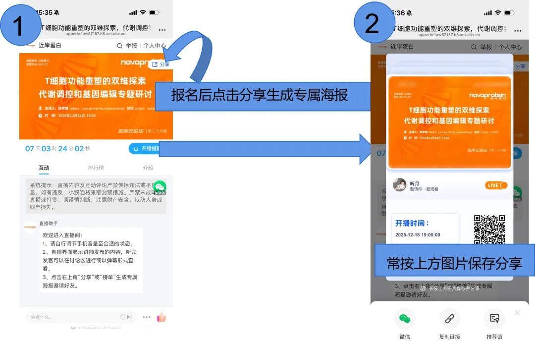 • 分享上方海报至朋友圈(保留24小时)和一个生物医药行业群,添加小助手微信发送截图(备注T细胞直播),可获得10元微信红包。(截止至12月18日19:00)